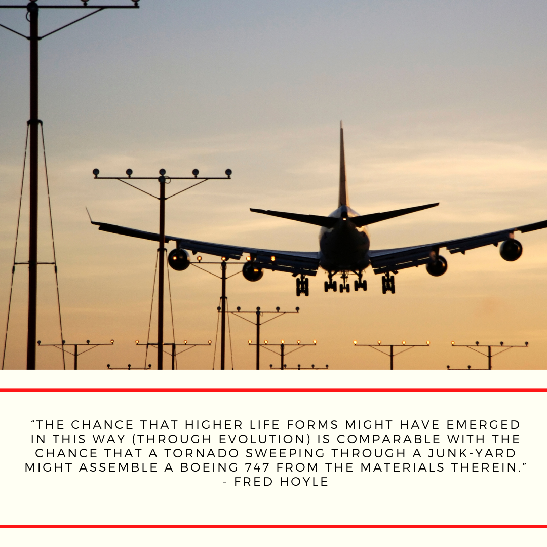 Which seems weird since logic and reason are based on our knowledge and experience and we simply don’t have enough of either when it comes to the hereafter. But most of these arguments revolve around the existence of God, because if we can prove God exists, it logically follows that all the rest of it is true, including the afterlife. On the other hand, some atheists like to use evolution as an argument against the existence of God which doesn’t make sense because evolution and God are not contradictory beliefs. So it’s ironic that one of the best arguments FOR God comes from an atheist. You probably don’t know the name Fred Hoyle, but you probably do know the theory of creation he coined – The Big Bang Theory (not to be confused with the TV show of the same name). Interestingly, Hoyle didn’t believe in the Big Bang Theory. Nor did he believe in evolution as Darwin had originally posited.[1] Instead he believed in intelligent design, a concept that something greater than ourselves must have guided the development or even creation of humanity. He didn’t believe in God as we understand God, and might be offended to hear his argument being used in God’s defense. But what he said in defending intelligent design was, “The chance that higher life forms might have emerged in this way (through evolution) is comparable with the chance that a tornado sweeping through a junk-yard might assemble a Boeing 747 from the materials therein.”[2] That’s how infinitesimally small the odds are of human beings ever being created simply by chance.
