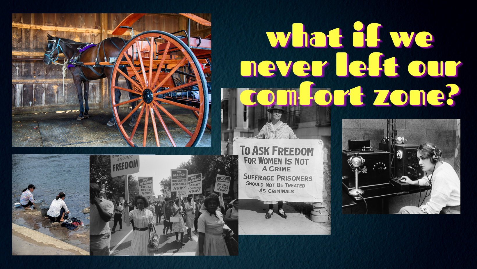 That’s the reason people are so fond of the saying, “If it ain’t broke, don’t fix it.” But if that were the case, we’d still be using horses for transportation. We’d all be fluent in Morse code. Our houses would be near the river so we could do our laundry every day. Most of us would agree life is better now than it was fifty years ago and better still from fifty years before that. Not only do we have modern conveniences like cars and telephones and washing machines, but Black people are no longer 3/5ths of a person, women are allowed to vote, and children are protected from unfair labor practices. Progress not only makes our lives better but our world better, too. To be sure, some things done in the name of “progress” seem to be a step backward (New Coke comes to mind) and we’re far from perfect, but overall, the world becomes a better place when we step out of our comfort zone and embrace what is possible.