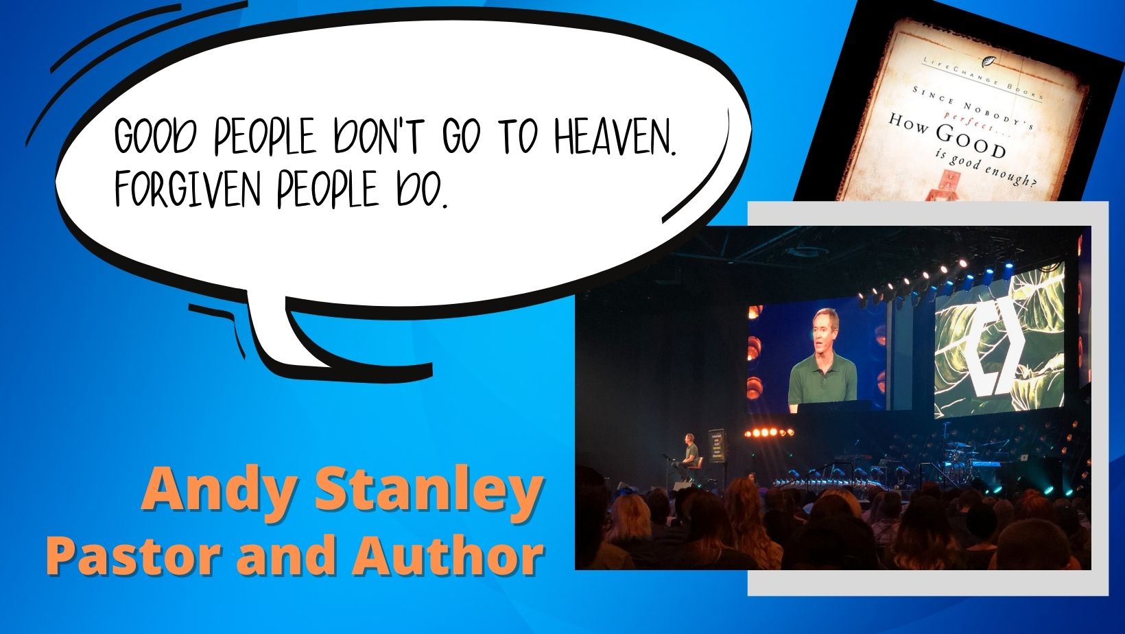 How do we know how good is good enough? If we can’t tell from God’s word, if we can’t use our own internal compass or barometer, and if we can’t even use the Bible, then how do we know how good is good enough? And that’s what God is challenging us to think about today. Despite all the predictions, the world isn’t likely to end any time soon, but we should still keep in mind those two eternal questions – where do you go and how do you know? As we talked about today, the assumption good people go to heaven is riddled with difficulty. So what can we believe in then? Here’s something Andy Stanley wrote, “Good people don’t go to Heaven. Forgiven people do.” We’ll talk more about that next week. But for today, let us come to the realization no matter how “good” we are, we are not perfect. We all need forgiveness. Thankfully we worship a forgiving God who gives us hope in Christ for something more than this life. In the name of the Father and of the Son and of the Holy Spirit. Amen.