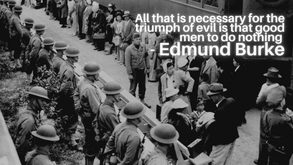 Without knowing if the threat was real and with actual violence against Japanese-Americans just for existing, maybe it was better to herd them off somewhere safe. But that argument has no legs to support it. Otherwise, our country would have locked up Germans and Italians also “for their safety.” This was despite absolutely no evidence that Japanese or Japanese-Americans were planning on rebelling against the government or its people. In fact two different studies came to the same conclusion, and yet the Japanese population on the mainland was herded off to camps in the most remote areas of the country under poor conditions and with no regard to their personal lives. It reminds me of a quote from Edmund Burke, “All that is necessary for the triumph of evil is that good men do nothing.”