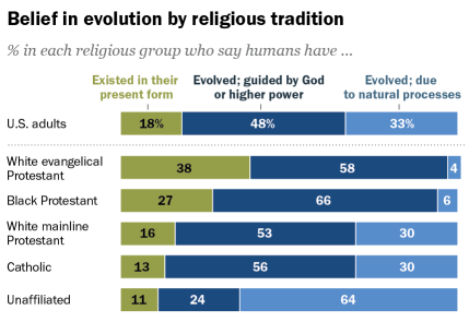 [8] https://www.pewresearch.org/short-reads/2019/02/11/darwin-day/ Statistics were only for Americans who answered the question. Those who responded without an opinion or answered outside the accepted fields were omitted.