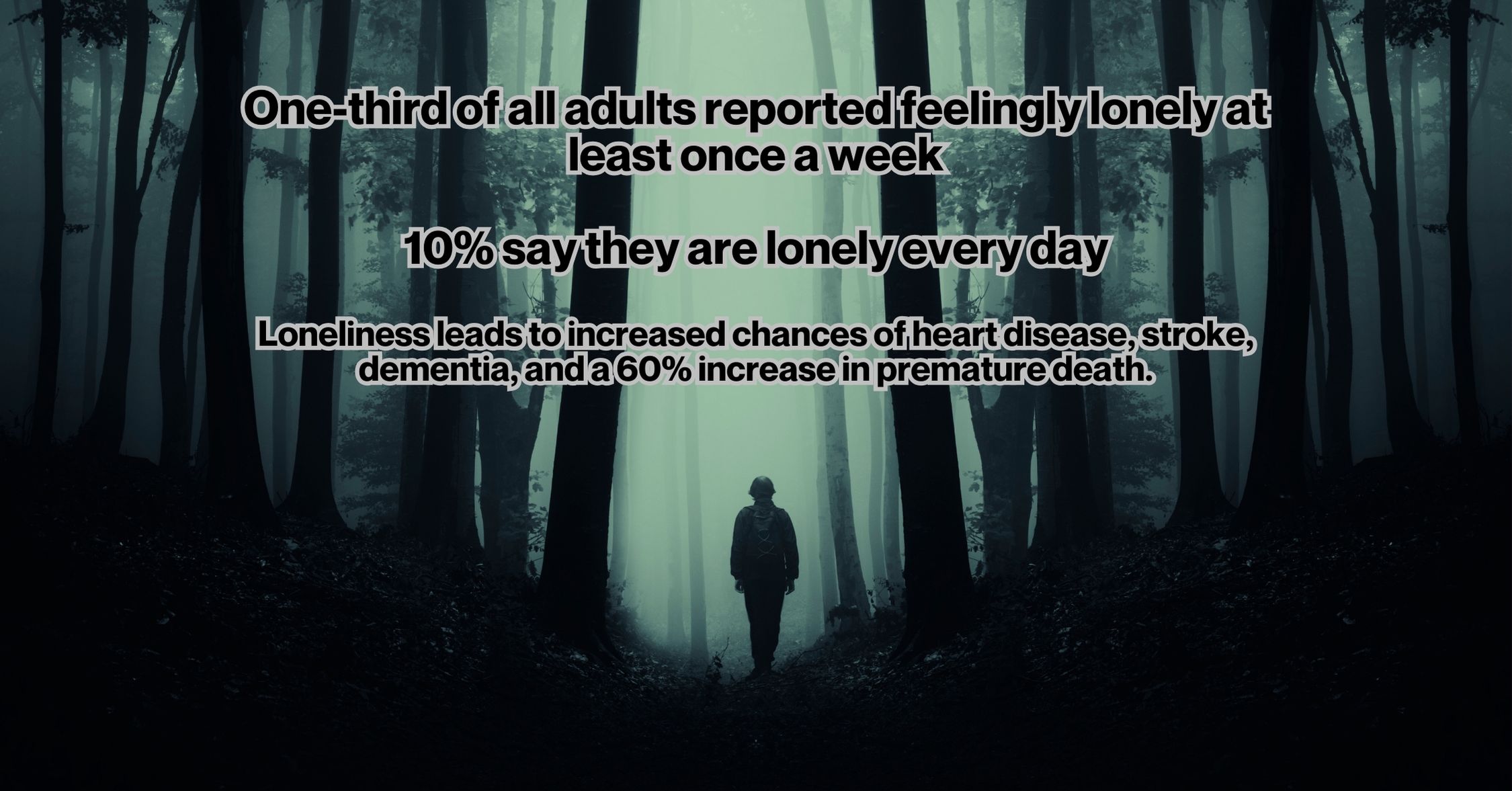 It’s important because some of the solutions to providing better care are beyond our grasp as individuals. But that doesn’t mean we are without tools. Obviously, prayer is a big tool in our tool kit, but the power of presence is often overlooked. You don’t need special training to be a presence in someone’s life. And sometimes just noticing when a person is not behaving the way they normally do is a small but important part in getting them the care they need before it becomes life-threatening. Another way we can help bring healing through presence is through invitation. One of the reasons we have our big events like the “End of Summer Potluck Celebration” and “Cookies and Carols” and the Easter Egg Hunt is to be a presence in our community and let them know we are here for them. But the even bigger reason is for you to have a chance to invite friends and family to come with you to these events and give them an opportunity to feel the loving presence of Christ in our church family. Just last year, the surgeon general declared an epidemic of loneliness and isolation. He said even before the pandemic, “half of U.S. adults reported experiencing measurable levels of loneliness.”[10] A poll by the APA showed that nearly a third of adults reported feeling lonely at least once a week, and 10% say they are lonely every day.”[11] Loneliness, often in the form of social disconnection, can lead to severe mental health challenges. What shocked me was to learn that loneliness can have the same impact on premature death as smoking daily![12] The Surgeon General reported that poor or insufficient connection includes a “29% increased risk of heart disease, a 32% increased risk of stroke, and a 50% increased risk of developing dementia in older adults.” As well as a 60% increase in premature death.[13] But more than that, loneliness leads to other consequences mentally including clinical depression and anxiety. The solution? More connection!