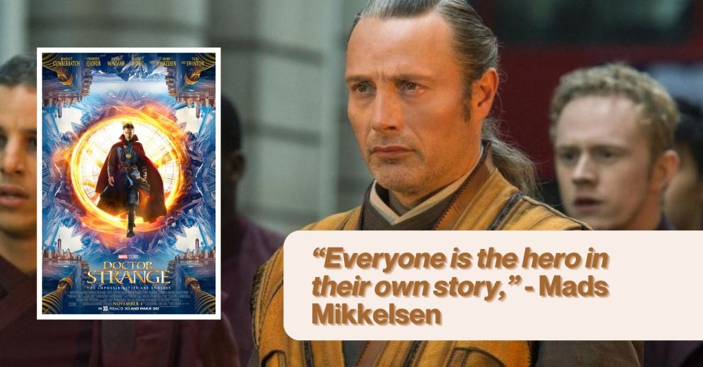 There are two sides. Your side. And their side. Your side is right. Their side is wrong. You wonder to yourself why they believe what they believe. It just doesn’t make any sense. And it’s hard not to see them as monsters. What they stand for will make things worse for everyone. They have such an intractable and yet indefensible position. You can’t understand how any clear-headed person could see the world as they do. Obviously, they are not clear-headed. You feel you have to do whatever is necessary to make things right. Of course, I’m talking about Kaecilius from the movie Doctor Strange. By every stretch of the imagination, Kaecilius is a villain except in his own eyes. Mads Mikkelsen, who plays the character in the film, said something in an interview that stuck with me. Kaecilius doesn’t see it that way. At the presser for the film’s opening he said, “I always play all characters as a hero. I mean, I think we have to look at it that way. The key to any good villain… is that they have a point. It’s not completely crazy what they’re saying. There is a point. Even in Doctor Strange’s eyes he does believe I have a point. Even though it’s for a fraction (of a second), if that.”[1] Everyone is the hero in their own story.