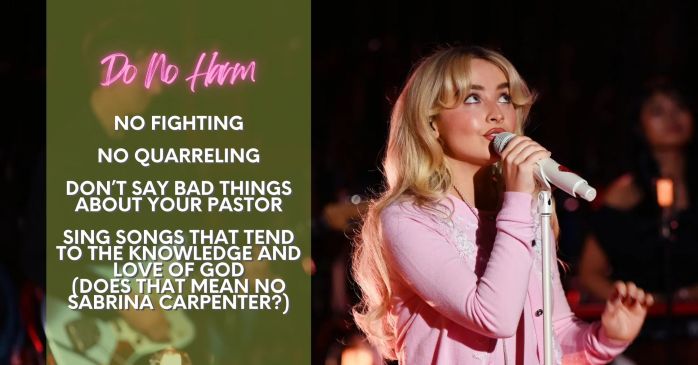 Wesley wanted to make it clear, so he explained in some detail exactly what he meant. When he wrote the General Rules for those small group classes, he included things you would expect. No fighting, no quarreling, no brawling. I’m not sure why John felt the need to call out brawling separate from fighting, but he did. And then he put in other stuff. No getting drunk. No suing your brother. No cheating the system. No working on the Sabbath. Mostly stuff you and I would agree with. My favorite, of course, is not saying anything bad about your pastor. Seriously. He put that in there. Then he added stuff to the list we might not immediately think of as “doing harm” – wearing gold or fancy clothes, needless self-indulgence (I guess as opposed to self-indulgence we need), and singing songs which do not tend to the knowledge and love of God.[3] Does that mean no more Sabrina Carpenter songs? We could argue about some of these all day, but that would be missing the point. Wesley was trying to challenge us to go beyond thinking of harm as something physical and force us to take a step back and think, “Am I doing something to hurt someone else?” Sometimes that hurt can be completely unintentional.