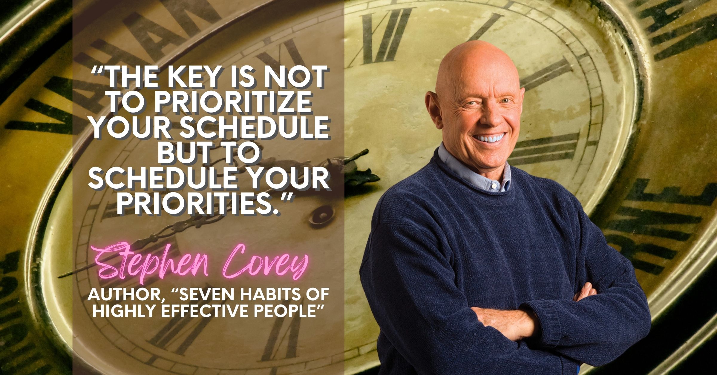 As you know, he’s the author of the book 7 Habits of Highly Effective People, and he writes, “The key is to keep the main thing the main thing.” You’ve probably heard that before. The key is to keep the main thing the main thing. We know this intellectually, but we don’t always do a great job of executing it. He says, “Most of us spend too much time on what is urgent and not enough time on what is important.” We’re so busy with whatever is in front of us that we don’t look at things long term. So how do we get around that? Covey says, “The key is not to prioritize what is on your schedule, but to schedule your priorities.” If you believe God is important then carve out time for God. It’s as simple as that. It’s just a matter of priorities.