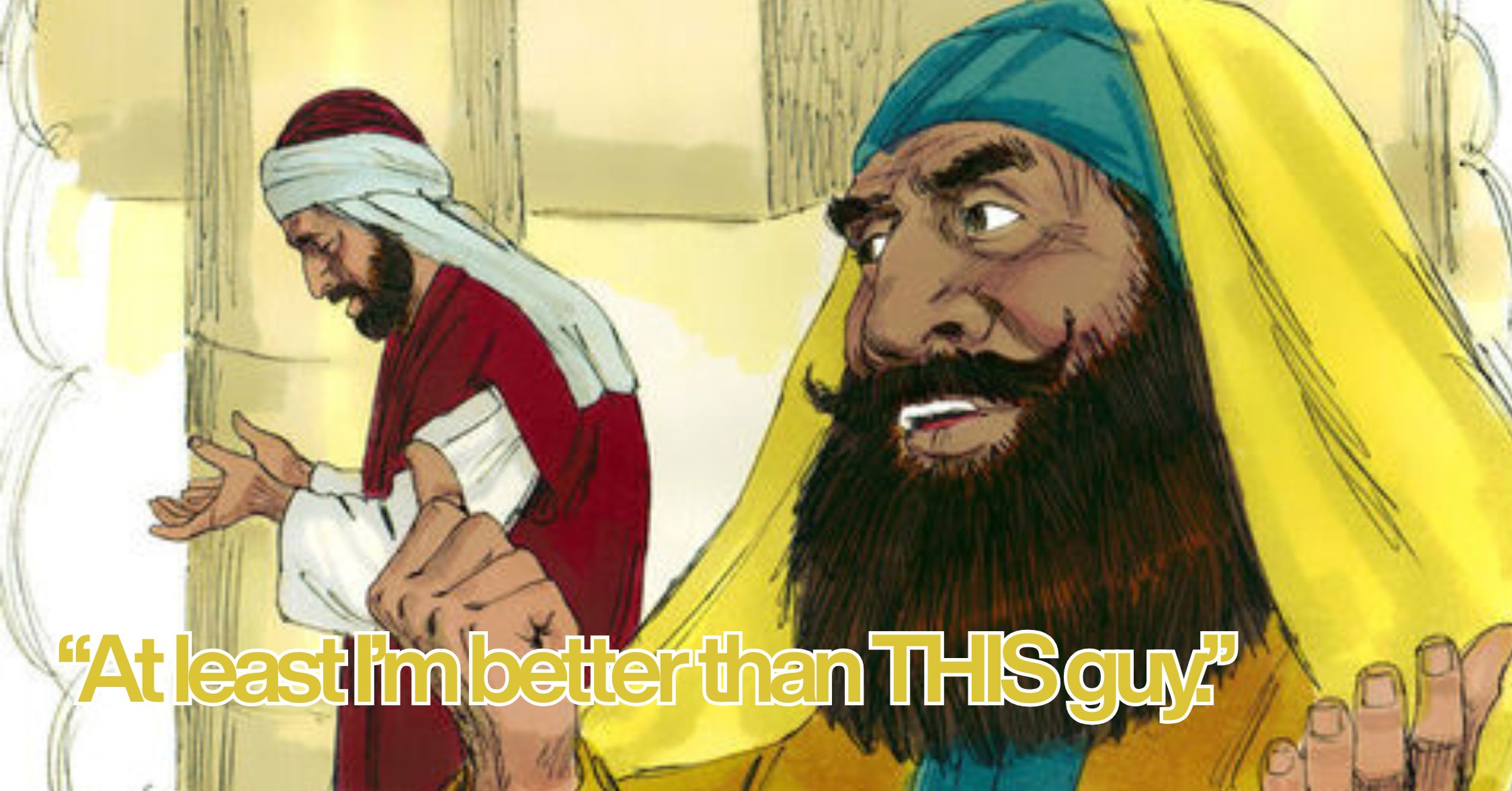 Have you ever caught yourself thinking something like that? You hear about someone in the news who was caught stealing, or cheating, or hurting someone and there’s a part of you, a part you probably don’t even say out loud that whispers, “Well, at least I’m not like him.” And that’s what is going on in this story. These two guys are going up to the temple to pray, and the Pharisee makes sure to keep his distance. He doesn’t want to be seen with a TAX COLLECTOR (insert your preferred most hated profession here). The Pharisee stands apart from him and prays this prayer: “God, I thank you that I am not like other people—robbers, evildoers, adulterers—or even like this tax collector. 12 I fast twice a week and give a tenth of all I get.” Amen. The Pharisee doesn’t admit to any wrongdoing. He doesn’t confess to any sins. He simply says, “at least I’m better than THIS guy.” Meanwhile, the tax collector, who probably feels unworthy to even be in the temple, simply asks for forgiveness, and Jesus said that it was the tax collector God was pleased with. Sure, the Pharisee followed the rules. He fasted. He gave his tithe. But he did it as much for himself as for God. The tax collector had humility in his heart and that’s who God was pleased with.