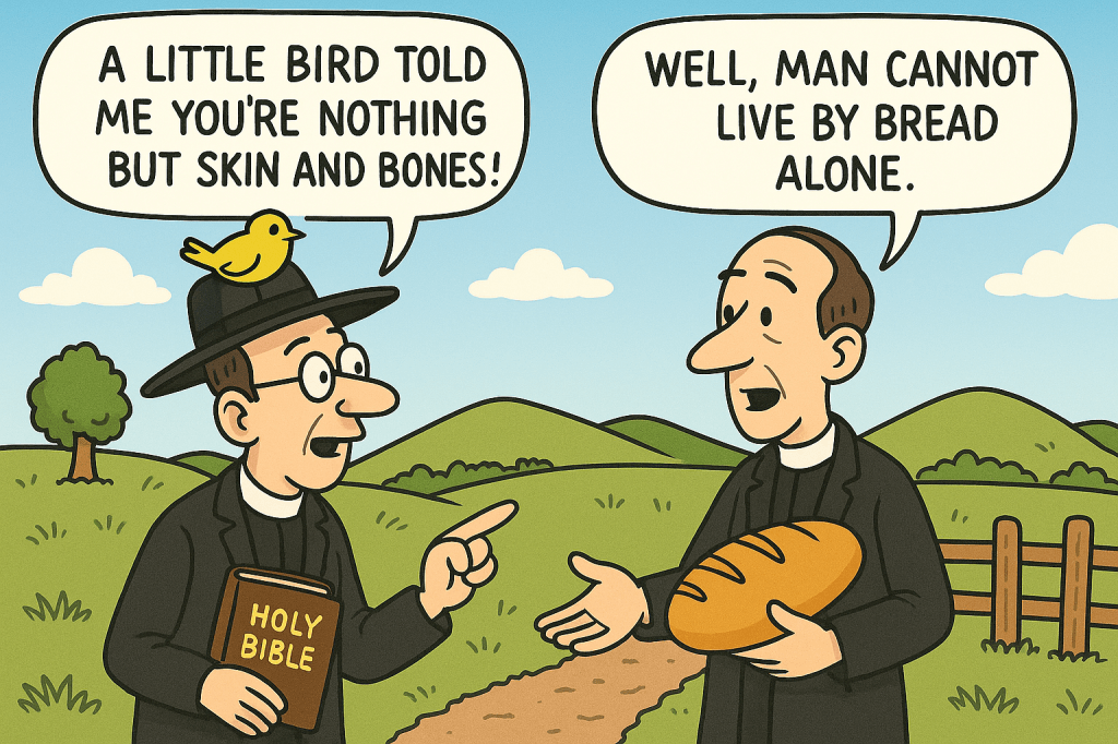 A preacher is someone who proclaims the Word of God, and you do that more often than you probably realize. In fact, most people are inadvertent preachers, even some atheists. What we know about God has become so interwoven into our culture we spout out sayings from the Bible without even realizing it. Some are pretty obvious. “Man cannot live on bread alone.” That one comes from Matthew 4 where Jesus is being tempted by the devil. Having “a thorn in my flesh” is how Paul describes his weaknesses in 2 Corinthians 12. And Jesus proclaims a new way to look at “an eye for an eye” in the Sermon on the Mount from Matthew 5. But there are others that are less obvious. For example, if you’ve ever said, “A little bird told me” you’re paraphrasing a quote from Ecclesiastes 10:20 – “Do not revile the king even in your thoughts, or curse the rich in your bedroom, because a bird of the air may carry your words, and a bird on the wing may report what you say.” If you’ve ever said someone was “nothing but skin and bones?” or that you “escaped by the skin of your teeth” you’d be quoting from Job 19:19-20 – “All my intimate friends detest me; those I love have turned against me. I am nothing but skin and bones. I have escaped with only the skin of my teeth.” And if you ever “saw the writing on the wall” you would be paraphrasing from Daniel 5:5-6 – “Suddenly the fingers of a human hand appeared and wrote on the plaster of the wall, near the lampstand in the royal palace. The king watched the hand as it wrote. His face turned pale and he was so frightened that his knees knocked together and his legs gave way.” The Bible is such an ingrained part of our culture and our language that it seeps into our lives in bunches of different ways. These little grains of wisdom that guide us and give us direction are part of God’s Word, but the most important quote from the Bible that we should constantly ask ourselves is do we practice what we preach? Matthew 23:2-3 – “The teachers of the law and the Pharisees sit in Moses’ seat. So you must obey them and do everything they tell you. But do not do what they do, for they do not practice what they preach.”