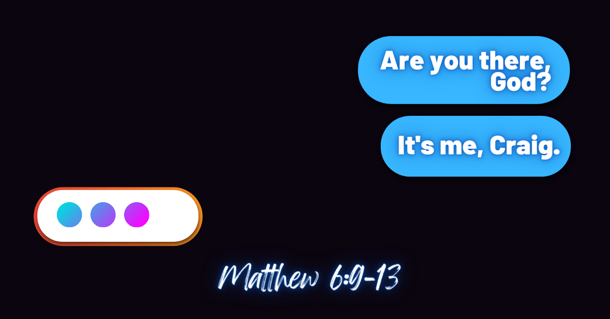 Eyes open or eyes closed? When you pray, do you do it with your eyes open or closed? I think most people’s gut reaction is to say with our eyes closed. But there are times you might pray with your eyes open. Like when… Continue Reading “Are You There God? It’s Me, Craig.”